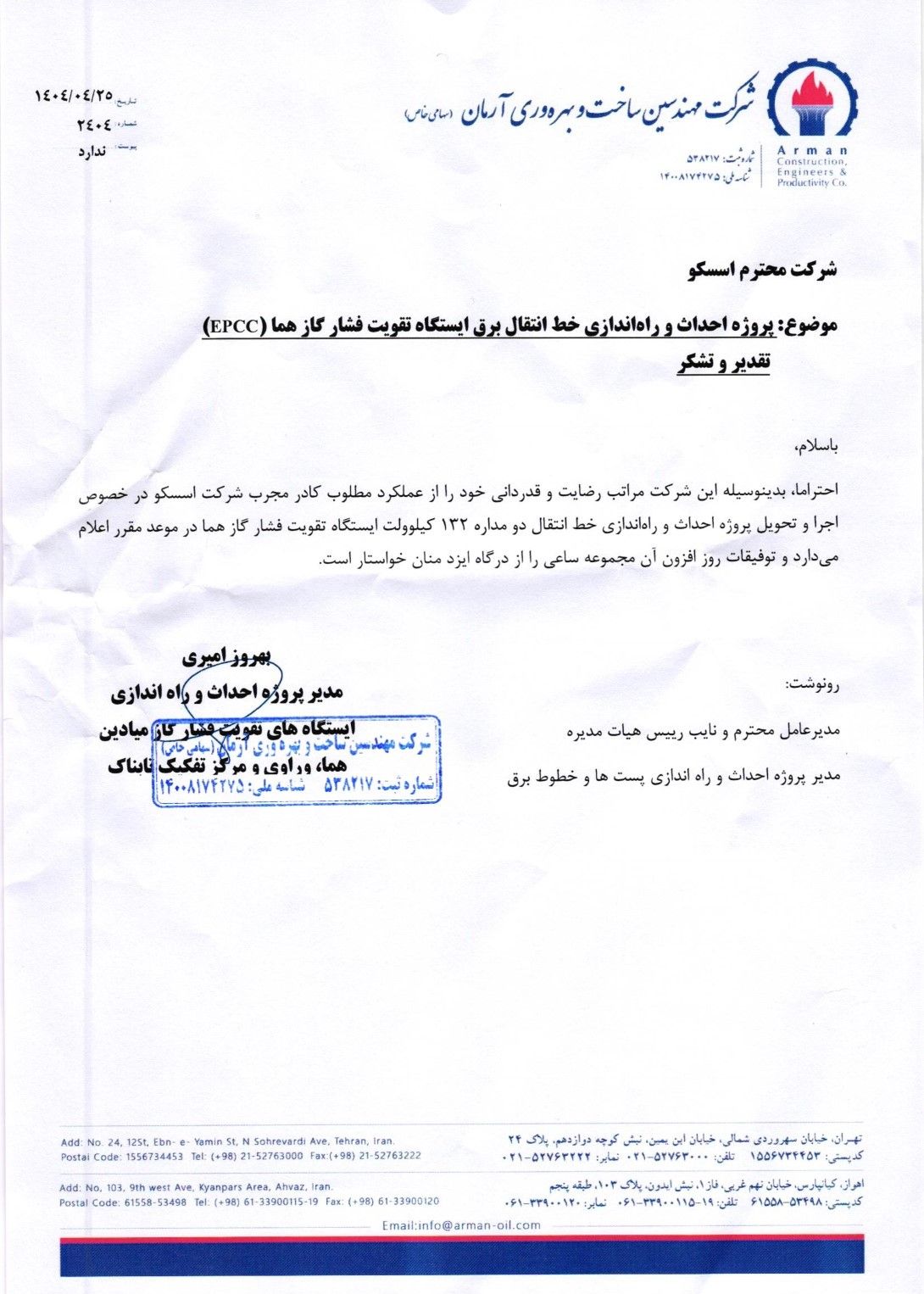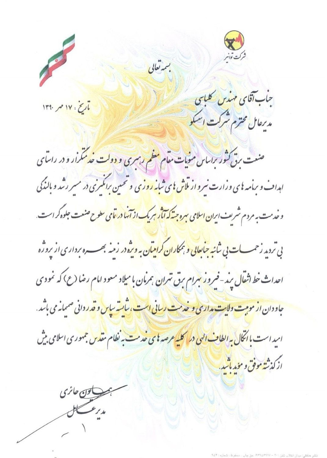 No. 96, Yazdan Panah St., Valiasr St., Tehran, IranTel: +98 (21) 88784213Fax: +98 (21) 88773225